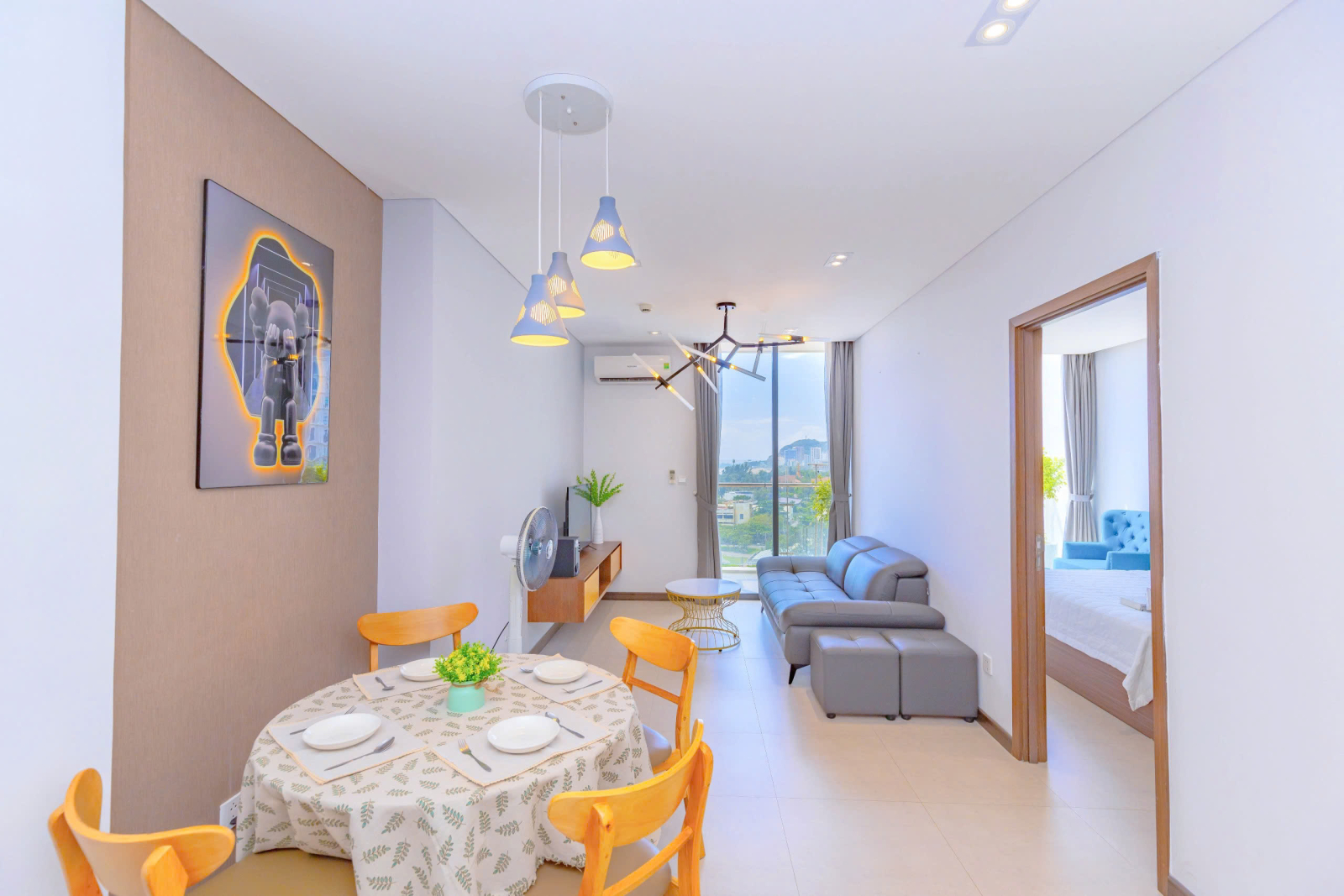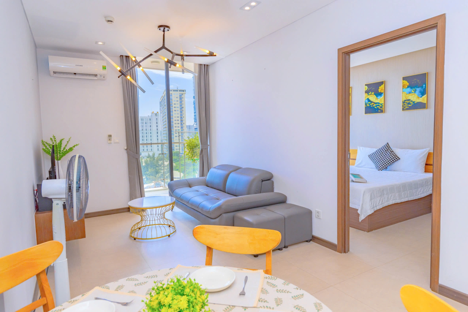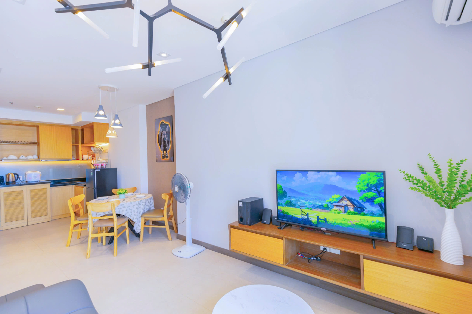 ❄  Phòng Khách : Máy lạnh + Smart Tivi ( Có Tài Khoản Netflix ) + Sofabed