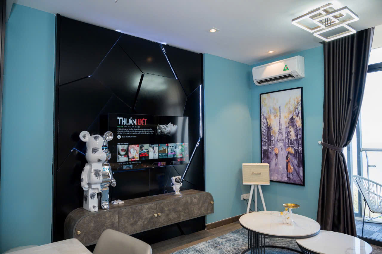 ❄  Phòng Khách : Máy lạnh + Smart Tivi ( Có Tài Khoản Netflix ) + Sofabed