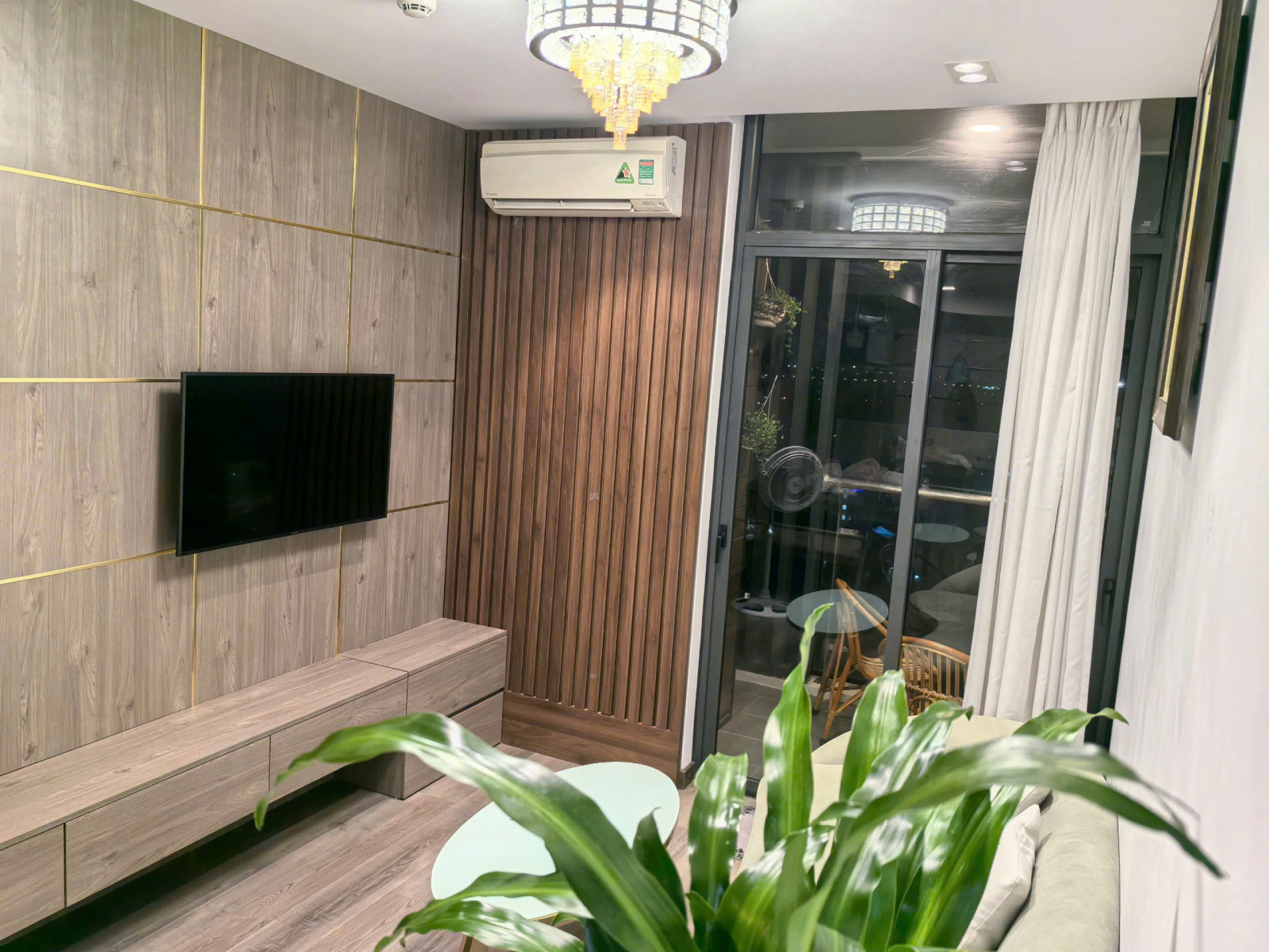 ❄  Phòng Khách : Máy lạnh + Smart Tivi ( Có Tài Khoản Netflix ) + Sofabed