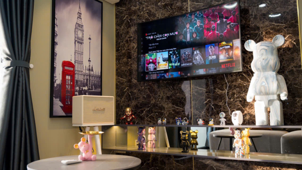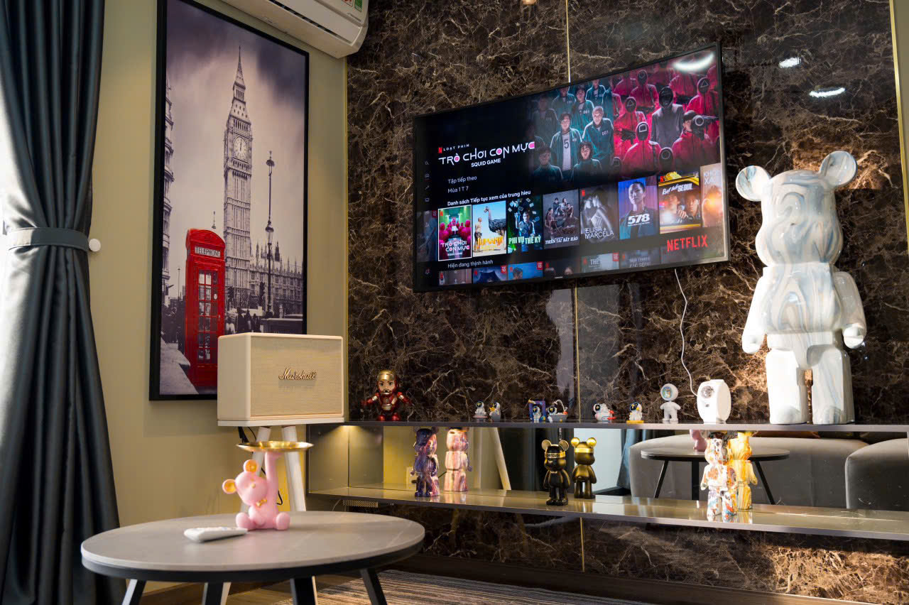 ❄  Phòng Khách : Máy lạnh + Smart Tivi ( Có Tài Khoản Netflix ) + Sofabed