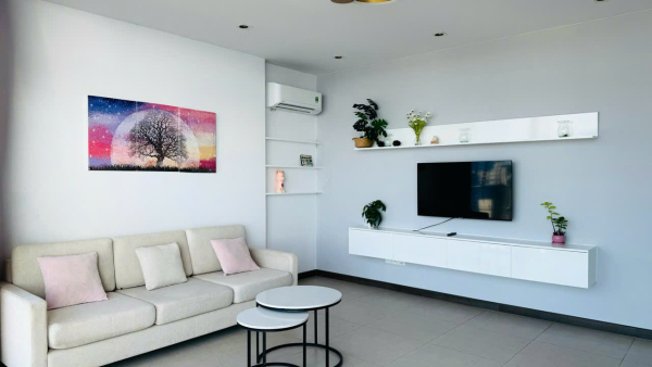 ❄  Phòng Khách : Máy lạnh + Smart Tivi ( Có Tài Khoản Netflix ) + Sofabed